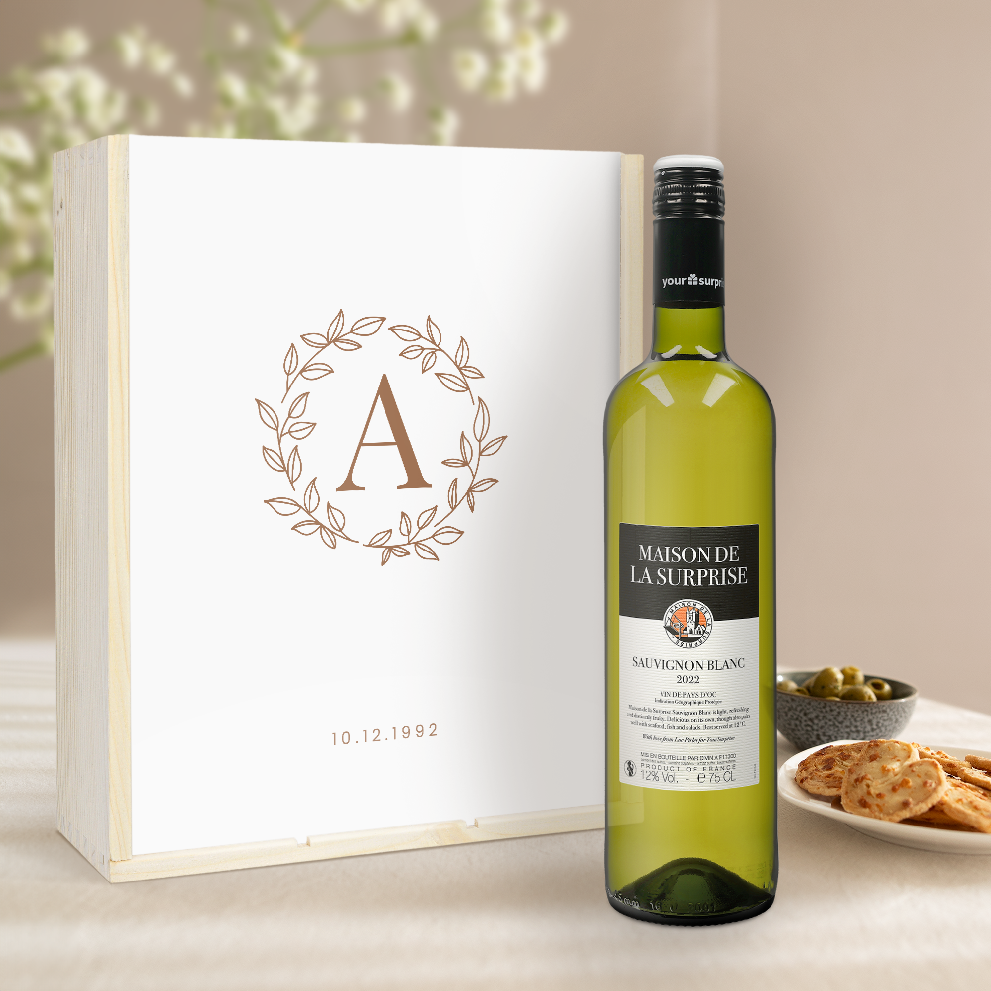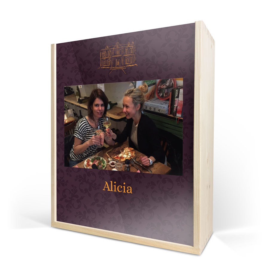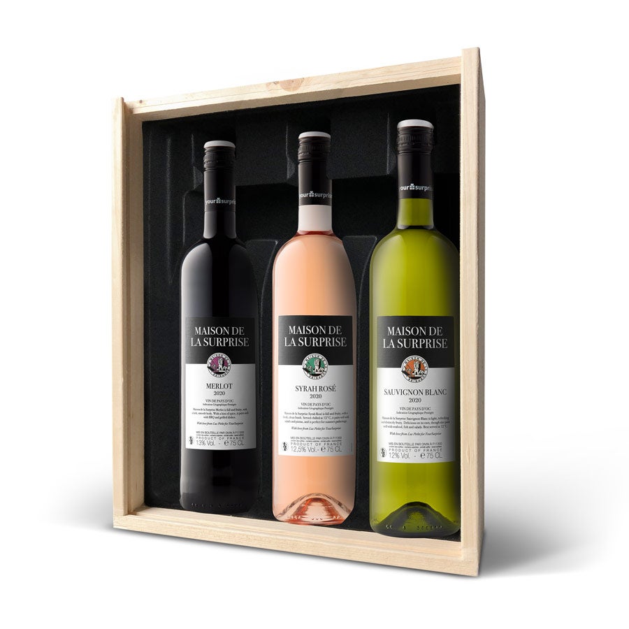 Восхитительное вино Maison de la Surprise в персонализированном деревянном футляре с фотографией, текстом и/или логотипом на ваш выбор. Создайте свой прямо сейчас!