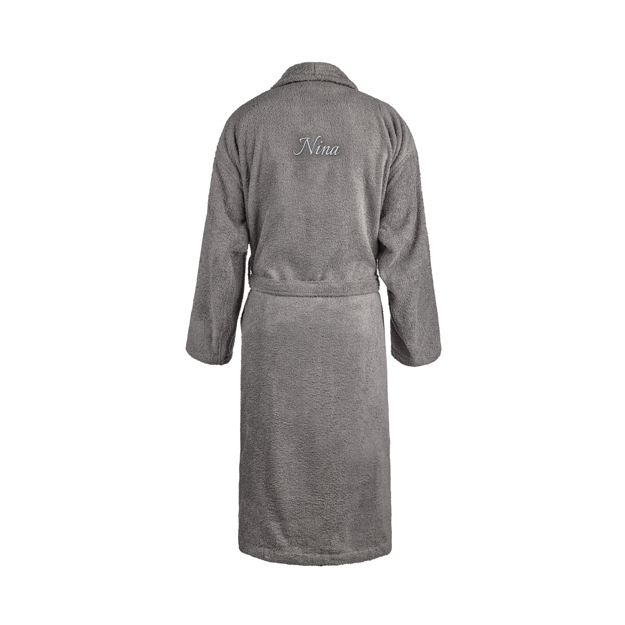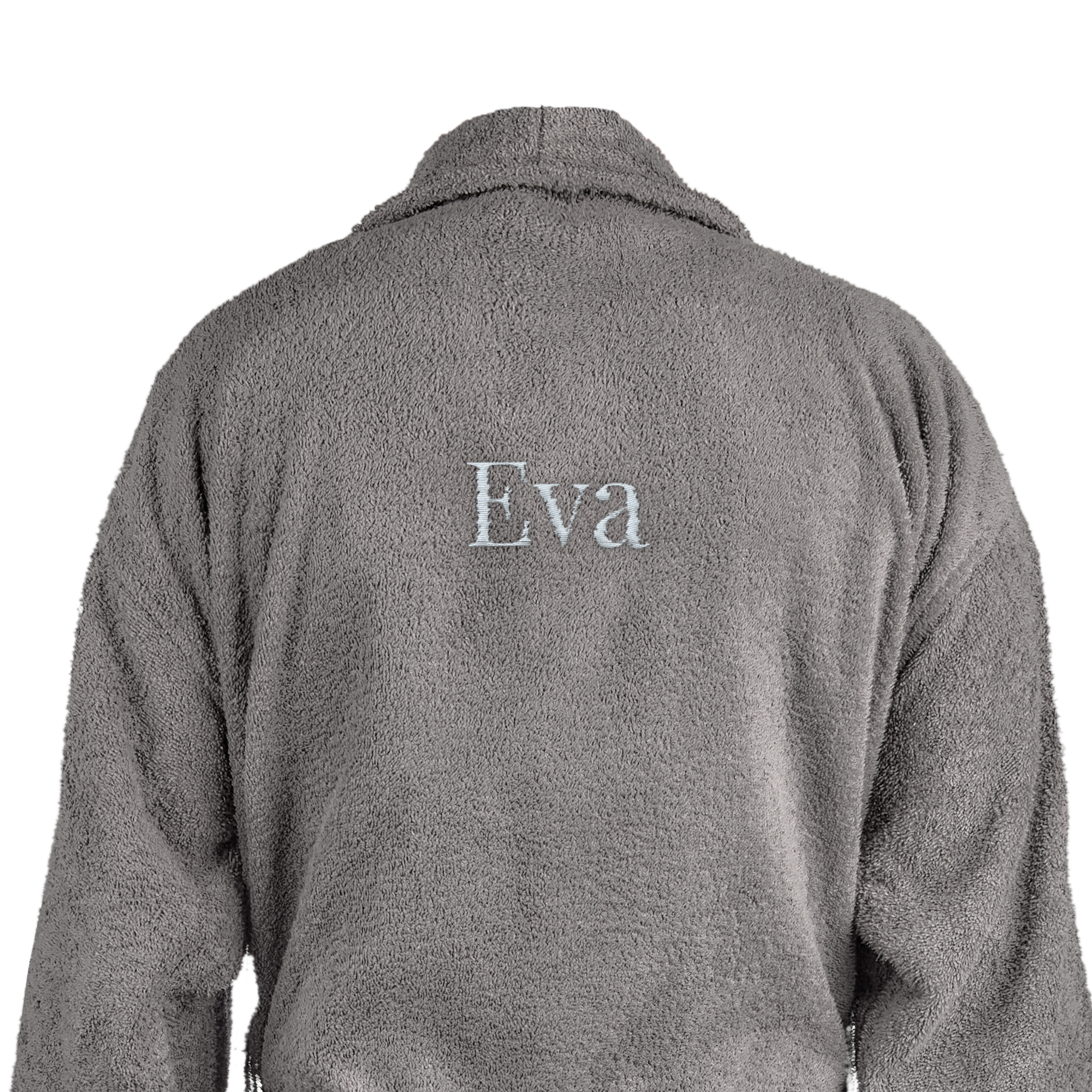 Подробнее о халате:Цвет: серыйМодель: ClassicМатериал: 100% хлопковая махровая ткань (380 г/м2)Размер: L/XLВысота: 120 смШирина: 65 смДлина рукава: 56 смШирина плеча: 21 смПринт: одна строка текста: 7x10 см (ВxШ)Антистатичный и дышащийИнструкция по стирке:. Стирать при максимальной температуре 60 градусов.
